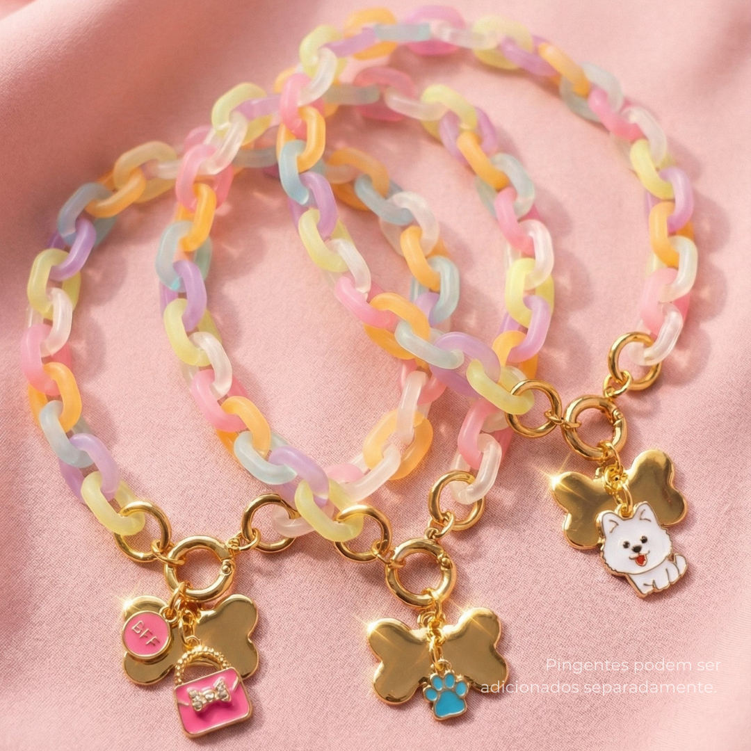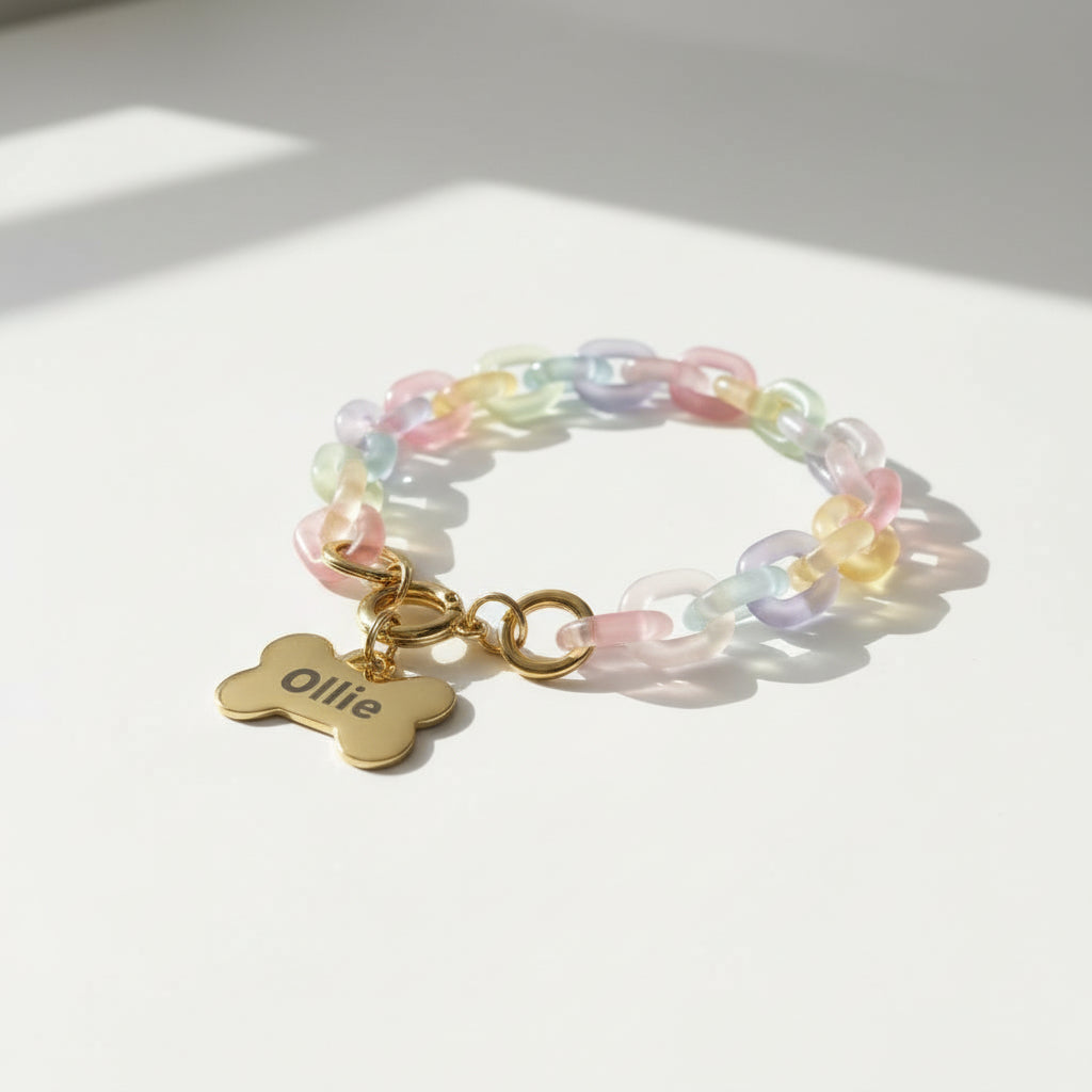 Pensada para o bem-estar, é uma peça leve e confortável, que não pesa, não aperta e não interfere nos movimentos naturais do pet. A corrente em ABS garante resistência, leveza e durabilidade, enquanto os metais de alta qualidade, resistentes à oxidação, preservam o brilho e a cor por muito mais tempo.