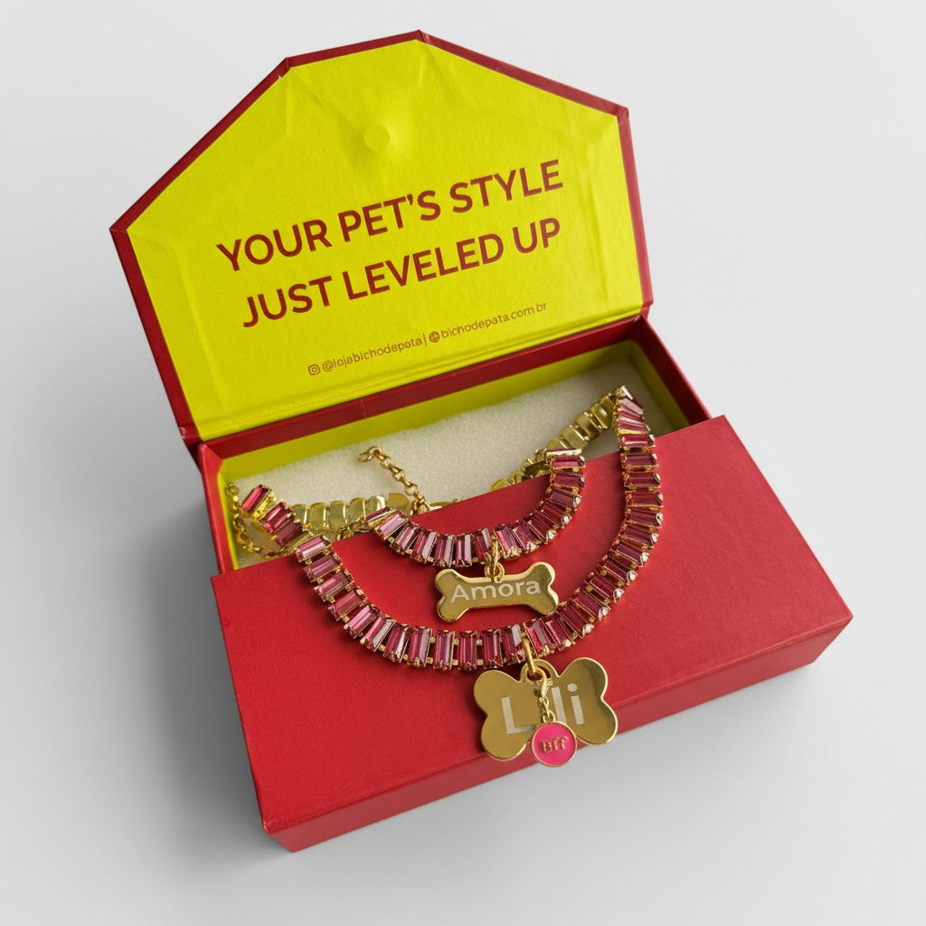 Pensada para acompanhar o dia a dia do seu pet com leveza e tranquilidade, essa coleira une identificação personalizada, conforto e design sofisticado.