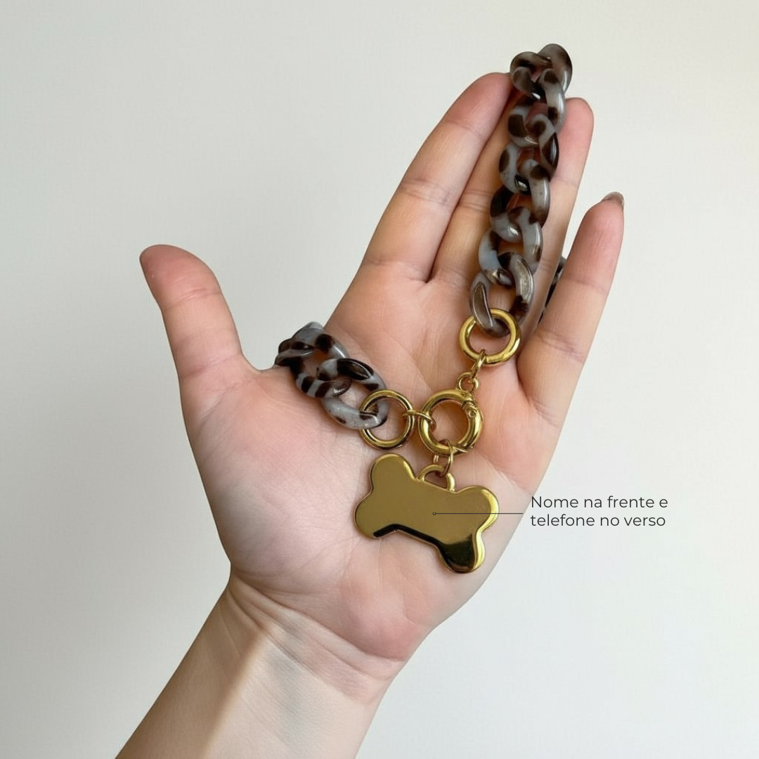 Coleira de Identificação para Cães e Gatos | Acrílico Tartaruga